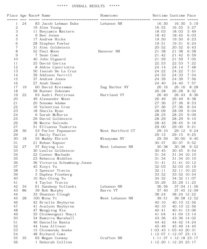 Dartmouth Diabetes Dash Apr 25 Written By Amy Mitchell Gomo 2026 Race Results - Overall Amy Mitchell Gomo